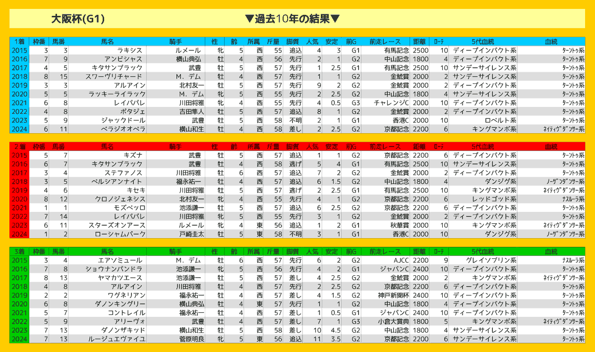まずは過去10年にどのような馬が良い結果を残しているかをチェックしておこうっ!!