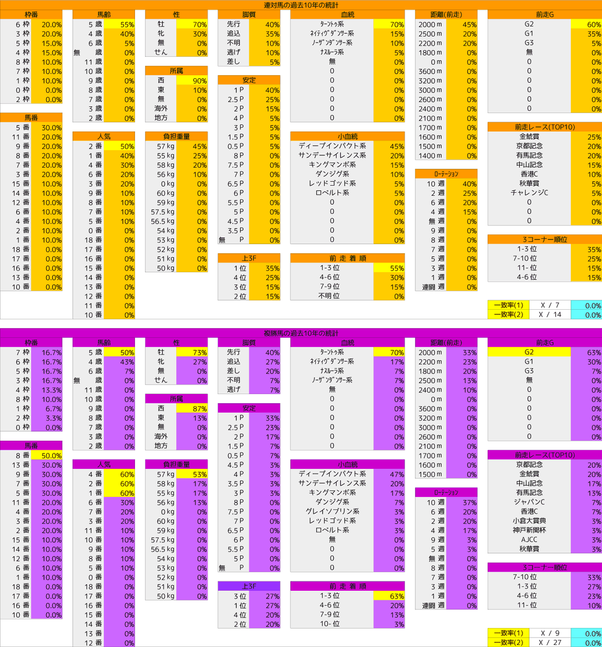 今年も2~4枠のゾロ目の馬が