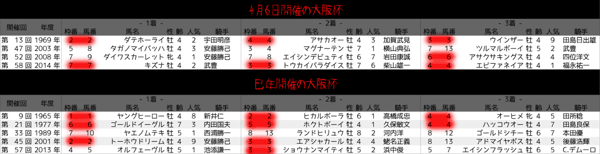 過去の巳年に開催された大阪杯