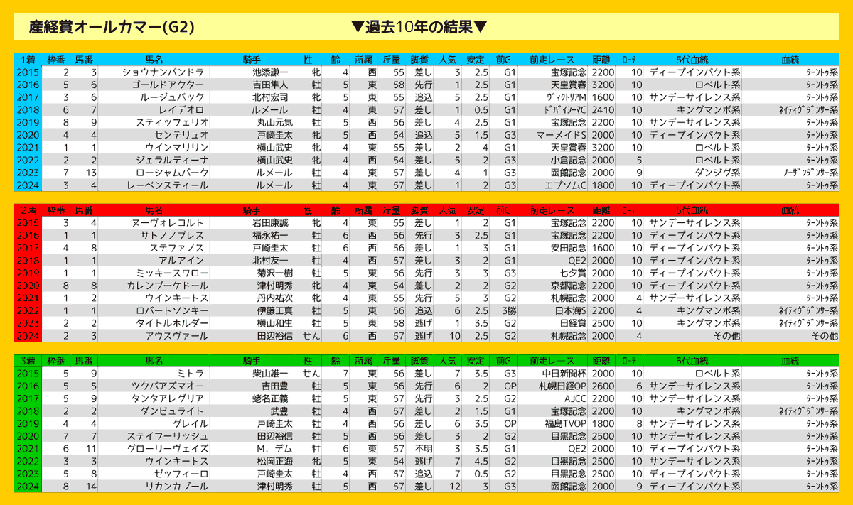 まずは過去10年にどのような馬が良い結果を残しているかをチェックしておこうっ!!