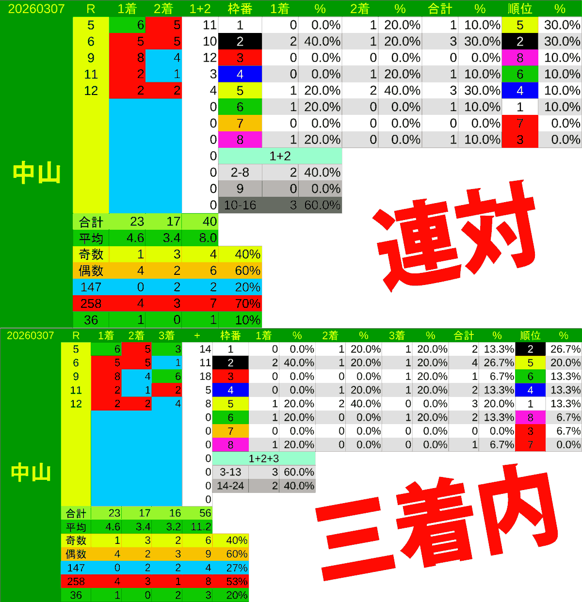 レース当日の10Rあたりまで様子を見て傾向が継続しているかをチェックするといいでしょう///レース前にツイッターで枠データを投稿したり、予想の変更をお伝えしていますので、よかったらチェックしてみてください(フォローはしなくてもOKですので)→当ブログのX(旧ツイッター)