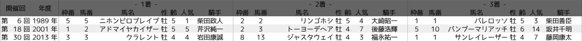 このブログでは過去10年のレースデータから簡単な統計を出して傾向を探っていきます。