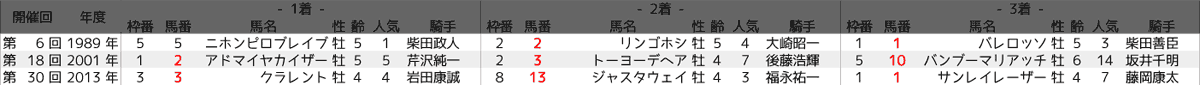 1989年の1着以外の馬番全てに