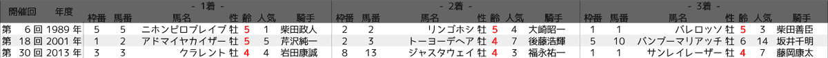 まずは過去10年にどのような馬が良い結果を残しているかをチェックしておこうっ!!