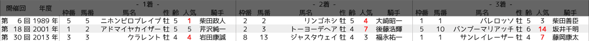 2001年の3着以外は全て