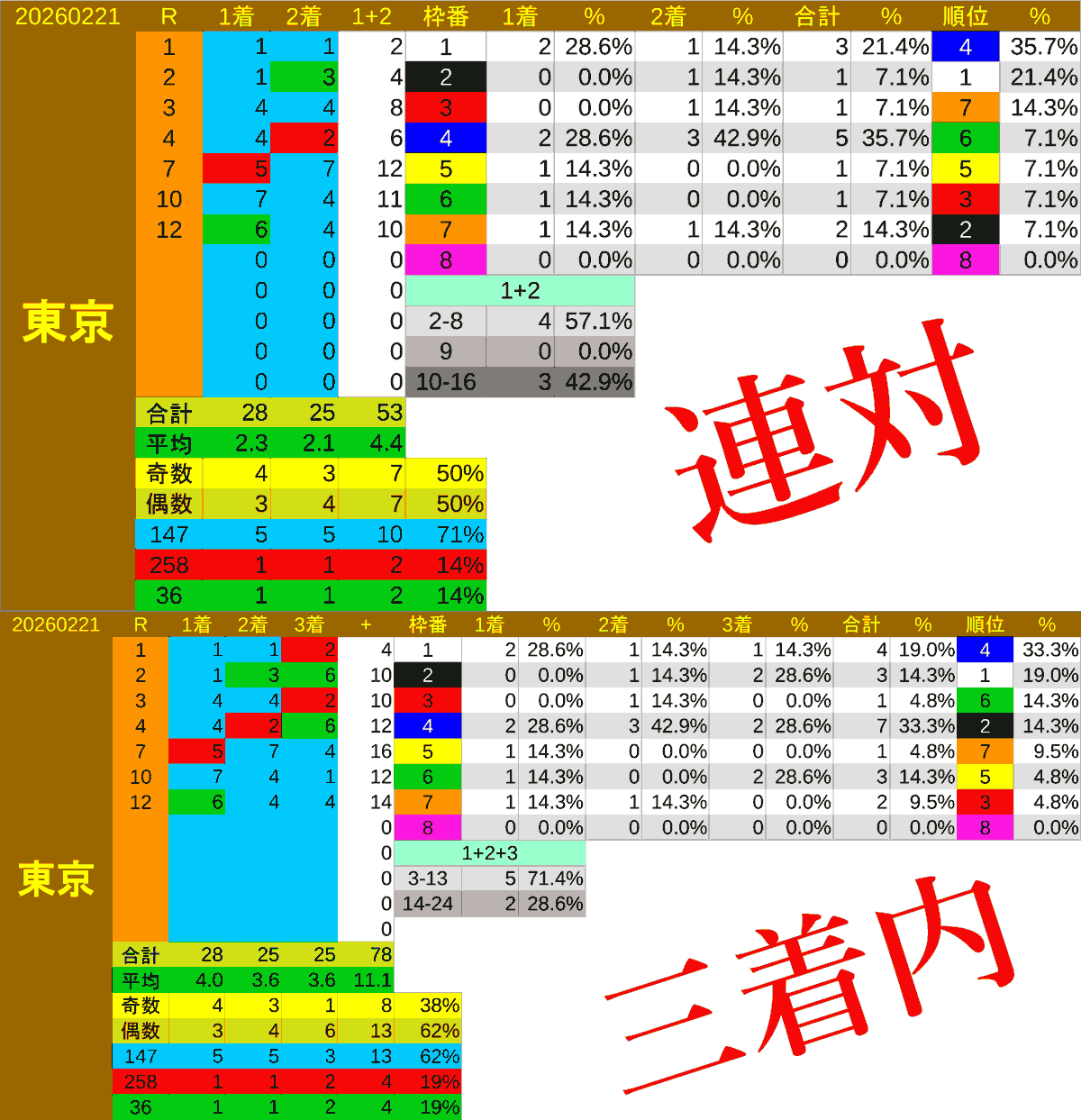 本日の東京ダートは6枠が好調🐴