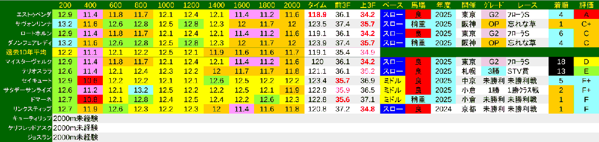 今年の出走馬で安定度2.0-2.5の馬は