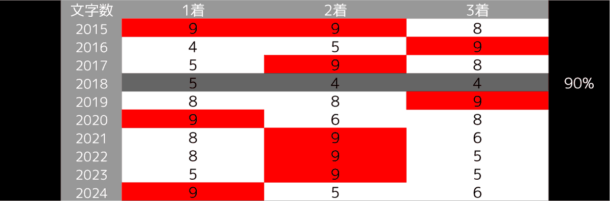 馬名が9文字の馬が3着内に入っている