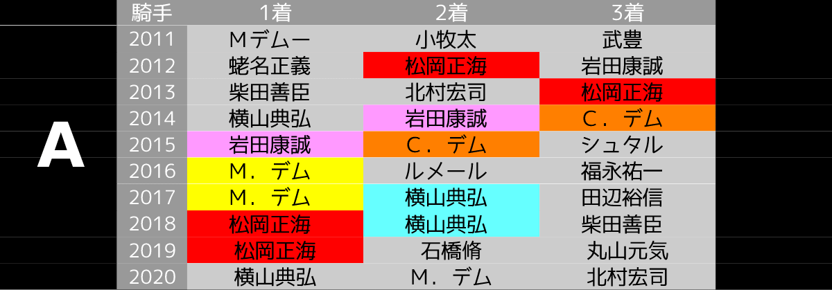 3着内に入った騎手が